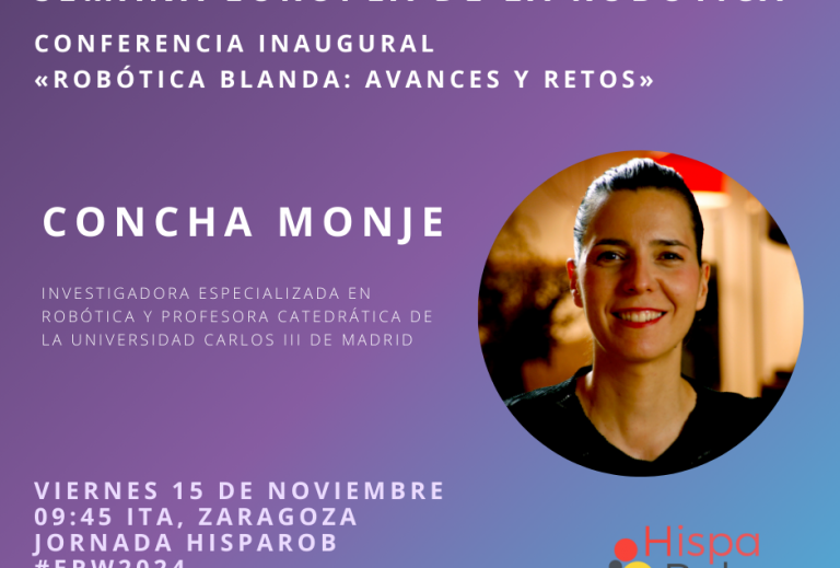 El día 15 de noviembre, durante la Jornada de HispaRob por la Semana Europea de la Robótica 2024, tendremos el honor de contar con Concha Monje, Investigadora en Robótica y Profesora Catedrática de la Universidad Carlos III de Madrid, que abrirá las ponencias con la conferencia inaugural bajo el título «Robótica blanda: avances y retos». Próximamente iremos anunciando al resto de ponentes que nos acompañarán ese día. Os recomendamos estar atentos a nuestros canales de difusión, donde próximamente anunciaremos todas las novedades. CONSULTA EL PROGRAMA PROVISIONAL DE LA JORNADA HISPAROB